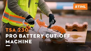STIHL introduces another world’s first—a cut-off machine powered by 36-volt Lithium-Ion battery technology. The TSA 230 STIHL Cutquik® cut-off machine starts instantly and changes the game for the jobsite, delivering maneuverability and solid cutting performance in a lightweight, compact package. Its onboard water control helps suppress dust while a toolless wheel lock prevents wheel rotation when removing the wheel attachment bolt. Because it is battery powered, there is no air filter to maintain. The TSA 230 even provides great value—priced below its gasoline-powered counterpart. Groundbreaking innovation, grounded in quality engineering.
