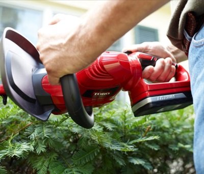 Toro's 20 V max new hedge trimmers with high-performing features make yard care seem effortless. The ergonomic handle rotates 90 degrees in each direction providing superior ease of use and accessibility when trimming vertically. The powerful 20 V Lithium-ion battery is lightweight and compact but delivers the power to get the job done right. Battery manufacturer rating; 20 V maximum & 18 V nominal. Actual voltage varies with load.