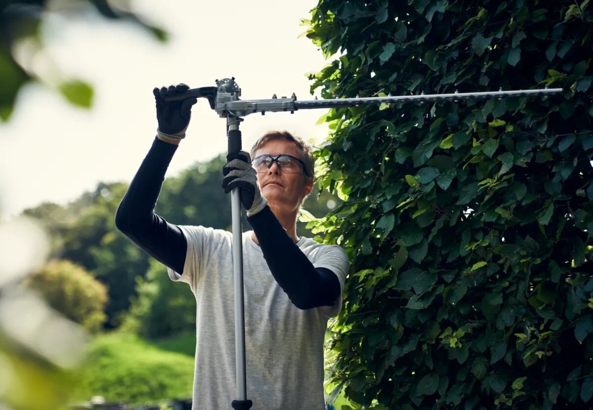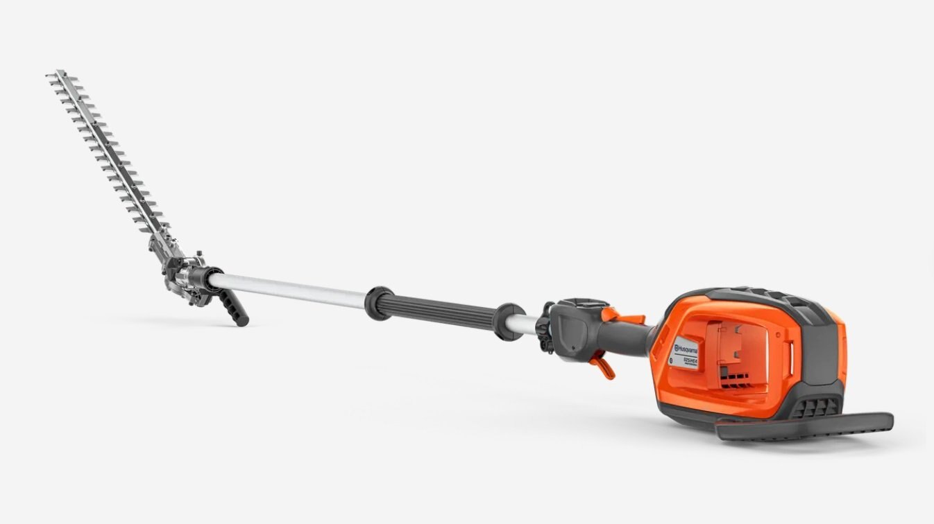 Battery-powered pole hedge trimmer with 4m reach and adjustable cutter barHusqvarna 525iHE4 is a high-capacity, battery-powered pole hedge trimmer with up to 4 meters reach, designed for professional use. The 60cm adjustable cutter bar, equipped with triple grinded knives, offers high cutting speed for high productivity when cutting high, wide, or low hedges. The cutter bar also folds easily to facilitate transport and storage. Well-balanced design, low vibration level, ergonomic handles, and intuitive user interface enable comfortable use during long and demanding working hours. IPX4 standard for all-weather use and an active battery cooling system ensure high uptime. Integrated connectivity for easy connection to digital services such as Husqvarna Fleet Services™. Battery and charger are not included. |