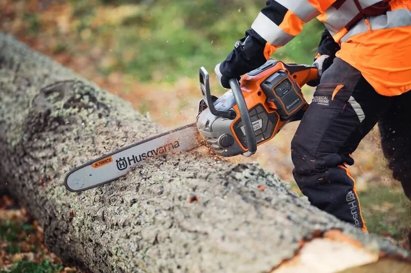 Power or agility, a professional chainsaw with two battery options