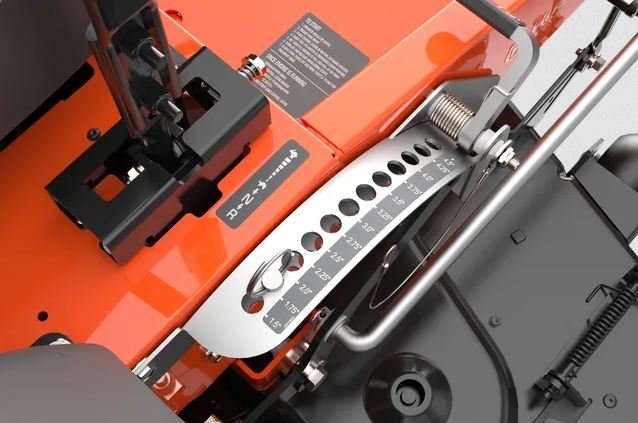 Quickly adjust the cutting height with the ergonomic, pedal-assisted cutting deck lift system